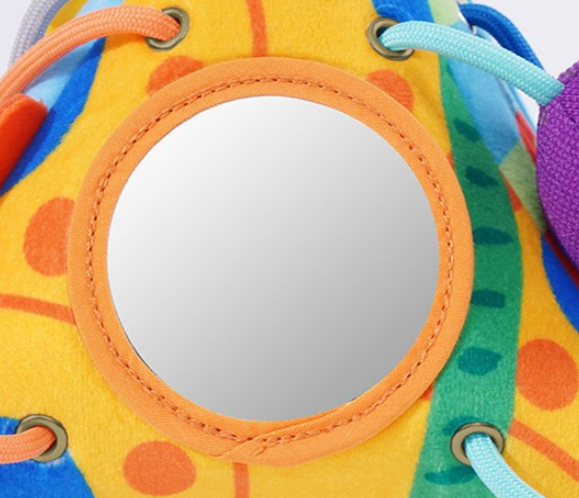 De mjuka figurerna, strukturerna och rörelserna fångar bebisens uppmärksamhet och uppmuntrar till både lek och motorisk utveckling. Leksaken är tillverkad i säkra, giftfria material och är skonsam mot små händer och munnar – perfekt för nyfikna små barn.