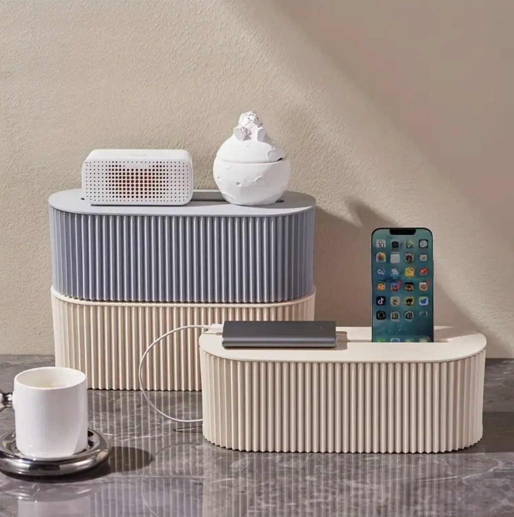Med vår stilrena kabelbox får du ordning på skrivbordet, TV-bänken eller köksbänken – snabbt och enkelt. Den döljer kablar, grenuttag och laddare på ett snyggt sätt, samtidigt som den skyddar mot damm, barnhänder och husdjur. Välj den färg som passar ditt hem bäst.